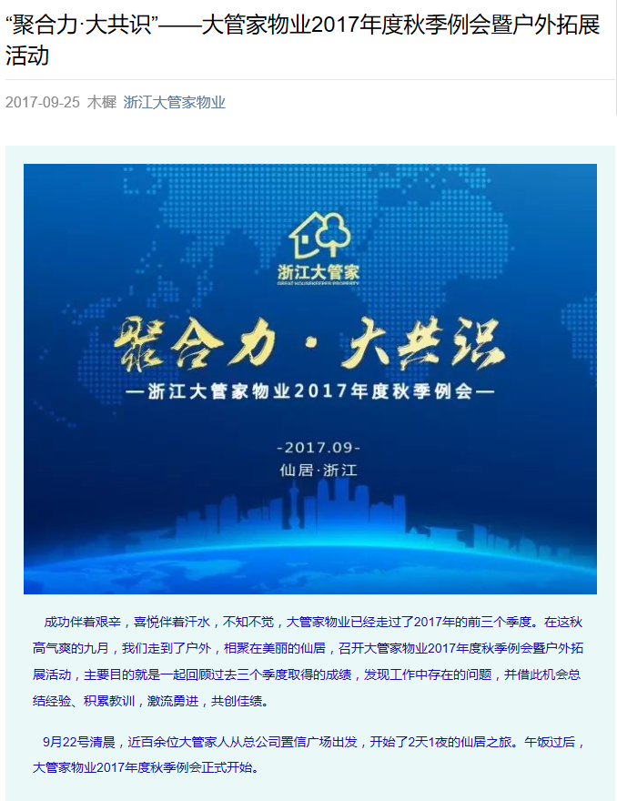 “聚合力·大共識(shí)”——大管家物業(yè)2017年度秋季例會(huì)暨戶外拓展活動(dòng)